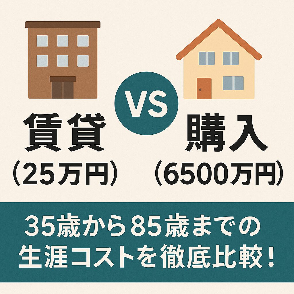 本記事では、35歳の家族世帯を想定し、85歳までの50年間で「賃貸」と「購入」それぞれの生涯コストを比較します。